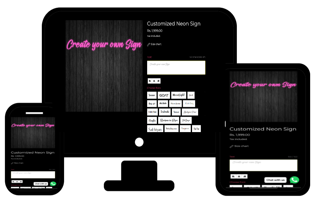 We have a collection of more than 300+ pre-designed Neon signs to Assist you in making the purchase. Be it your office neon sign, Studio Neon Sign or any event, don't worry we have got your back.